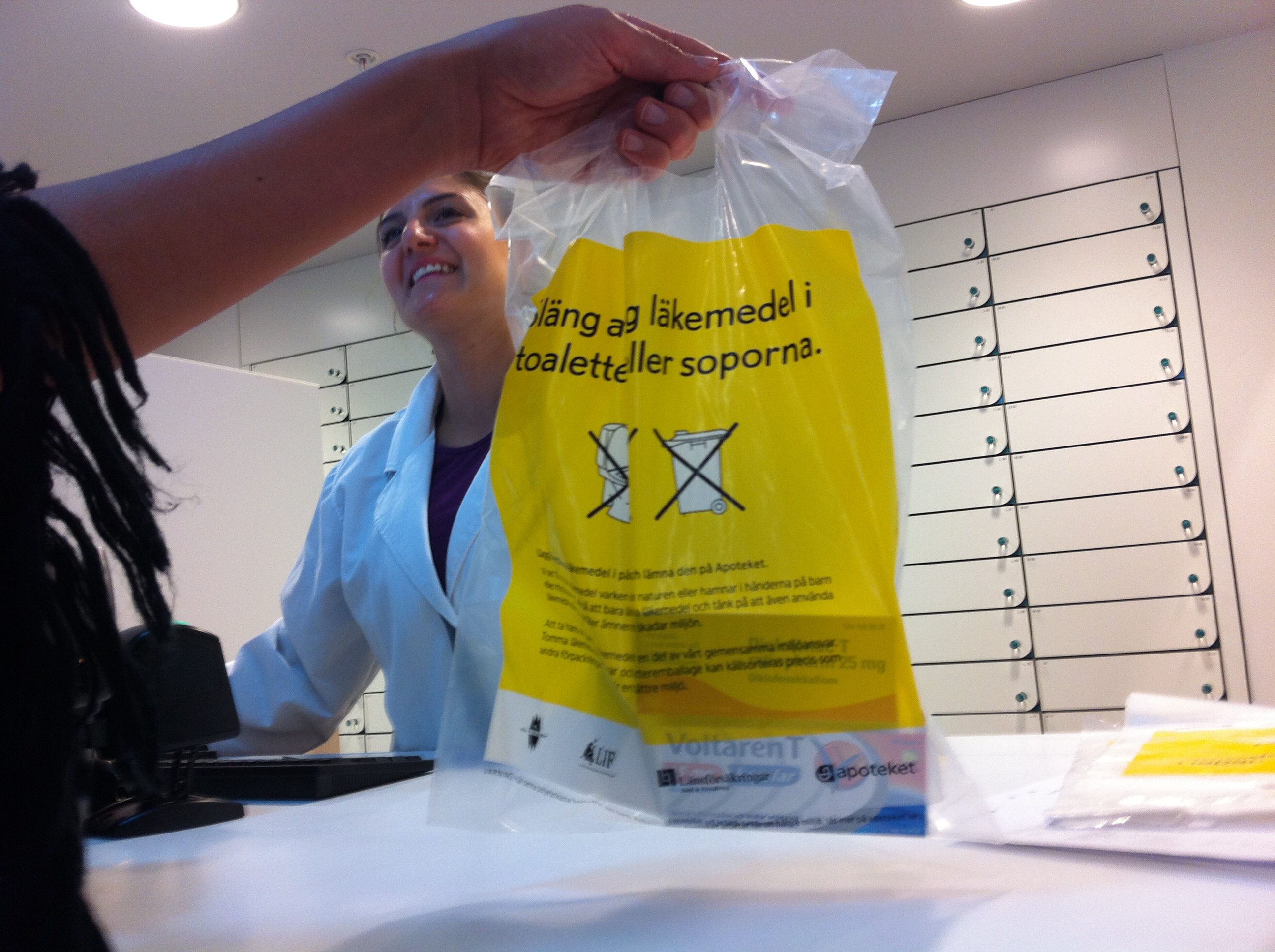 På Apotek kan du kostnadsfritt få särskilda plastpåsar för överbliven medicin samt speciella burkar/kanylavklippare för kanyler. Du kan även lämna mediciner i en egen genomskinlig påse. Påsar och fulla kanylburkar lämnas på ett apotek.